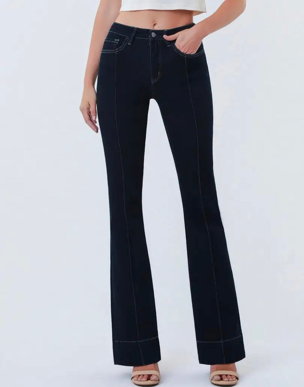 High Rise Pin Tuck Trouser Hem Bootcut Jeans