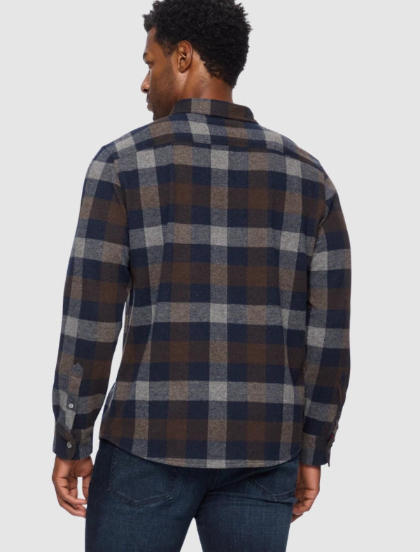 With a blend of extremely soft and stretchy knit performance fabric, you’ll find yourself reaching for this fall favorite all season long. Layer over your favorite tees, or on its own– this endlessly versatile flannel can be worn anytime, anywhere. Contrast fabric inside collar stand, back yoke, front placket, and sleeve cuffs. Single front chest pocket; button closures. Tailored athletic fit.