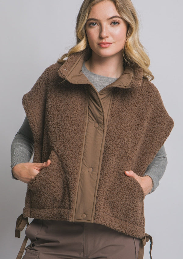 Mock Neck, Two Hand Pockets, Contrast Material Details & Cinchable Waist With Side Ties
