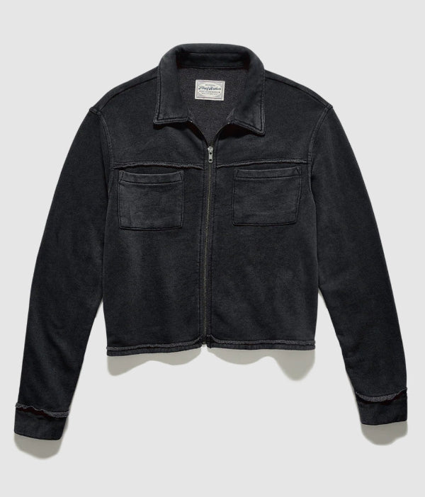 Understated in ultrasoft vintage-washed French terry and utilitarian in its style, this jacket instantly elevates any look thanks to its structured yet comfortable design. Long sleeves with drop shoulders and button cuffs frame a collared neckline with notched lapels. The relaxed body features two patch pockets and is secured with a full-length zipper.