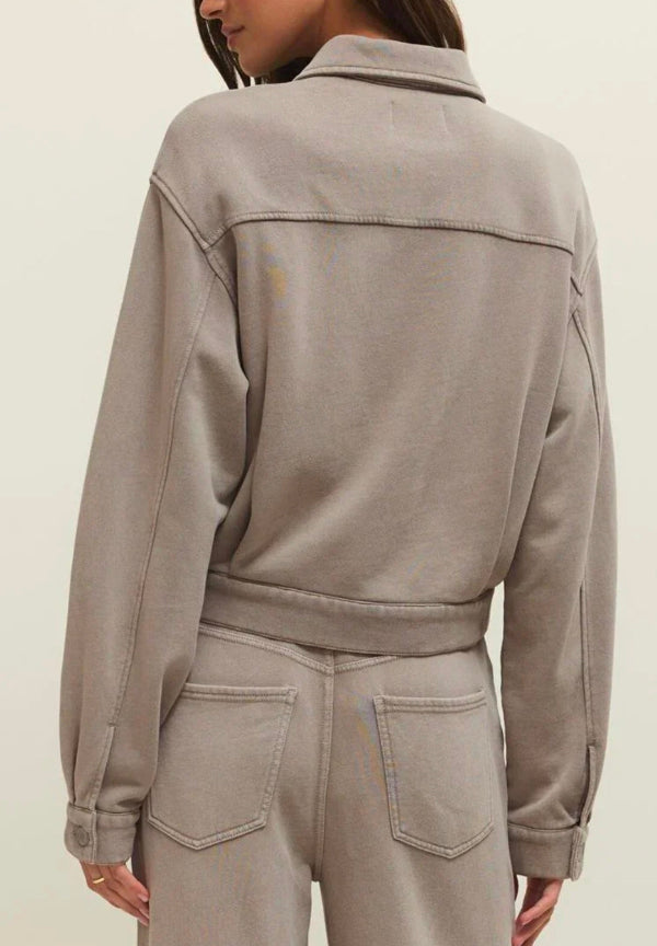 The vintage look of denim meets the softness of your favorite sweatshirt in this cropped jacket. Finished with roomy pockets and a zip front, it’s the kind of piece that works just as well with the matching pants as it does with a simple tee.