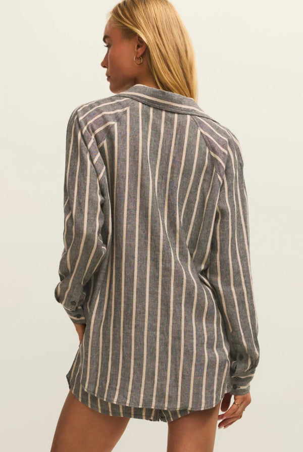 You'll love the easy, breezy comfort of this classic stripe button-up. Featuring that soft, drapey feel you look for, you can wear it alone or as a lightweight layer for an effortless look, no matter where your day takes you.